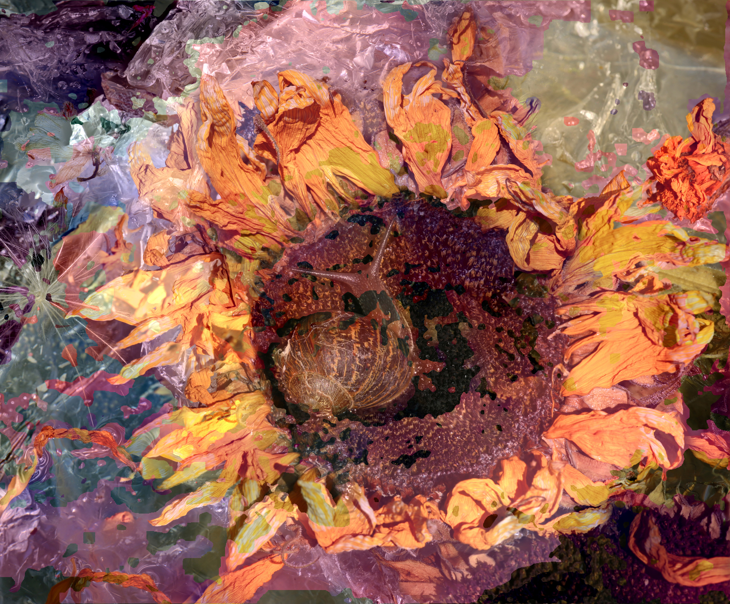 My work begins with a camera, but then I discover and recreate a whole new imaginary world. I am a photographic artist, not to be confused with an art-photographer. The journey starts where I visualise and photograph intricate images that are technically challenging. My current series explores close up details of decaying Sunflowers. A process that is constantly changing – wilting, new forms, shadows, textures – its fleeting. From a start I build panoramic composites from multiple focus-stacked exposures. Then reformed to build a giant flower. These images are not just photographs—they are engineered visions, layered with precision and intention. Each piece evolves through a fusion of mediums. I integrate my own artworks—collages, oil paintings, and other tactile expressions—into the photographic base.