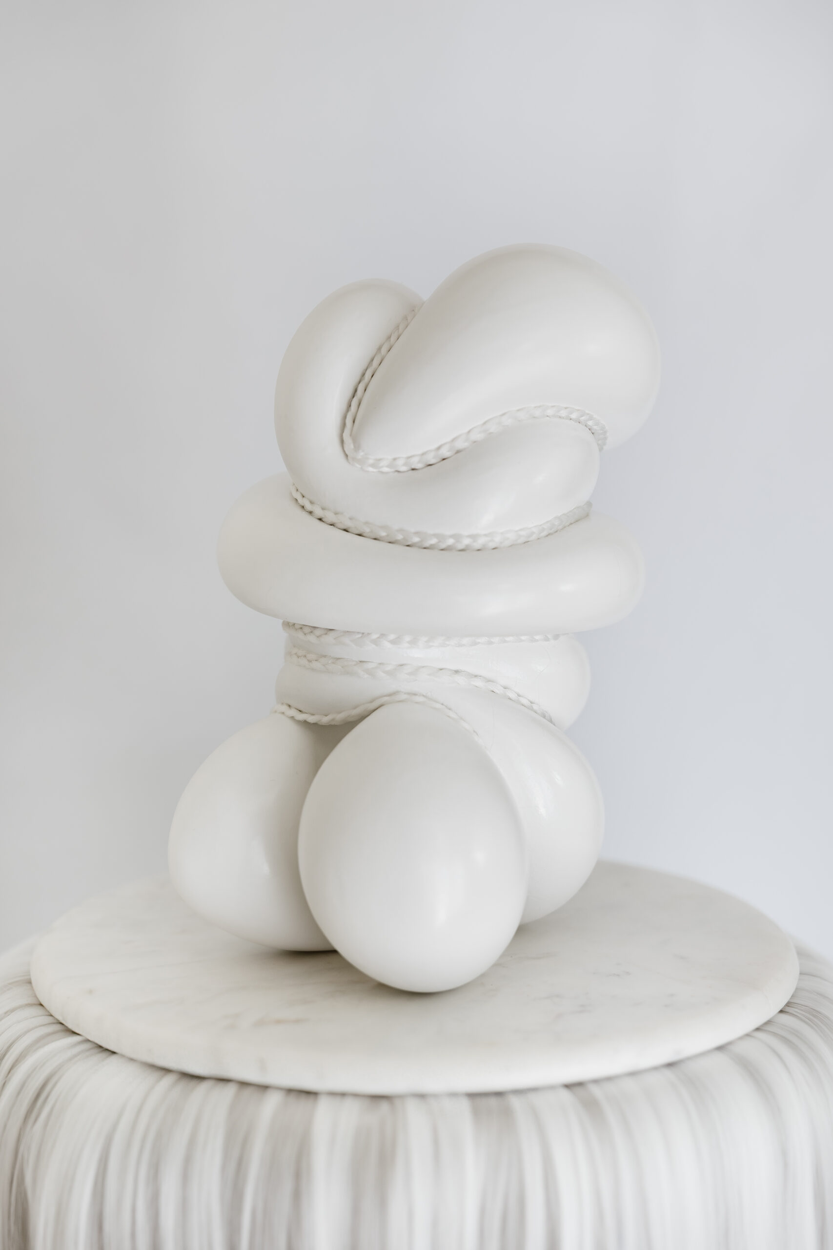 A modern sculpture titled ‘Untitled 1’, made from plaster resin hair marble, exploring texture and form. Created in 2024.