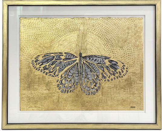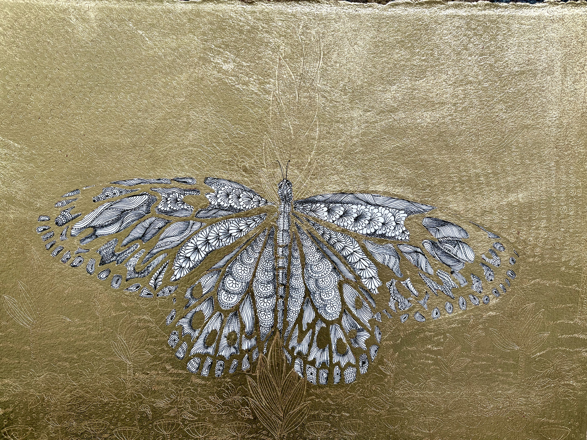 Mixed Media: Gold leaf, pen and Ink on water colour card