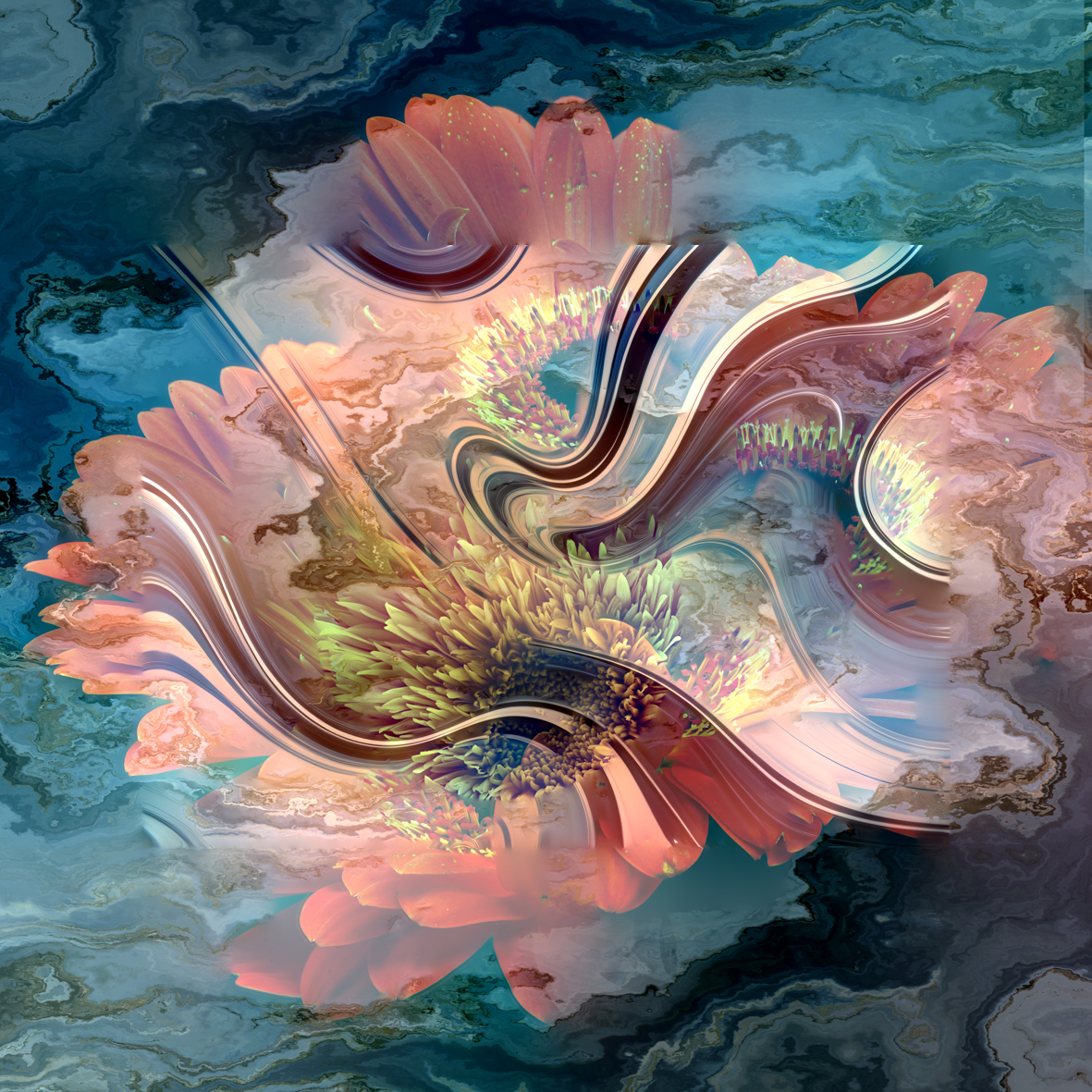Where Water Remembers: Suspended in a haze of cloudy liquid, a radiant flower clings to its brilliance. This work explores memory and buoyancy through submerged macro fragments, where light refracts across petal edges and dissolves into layered translucence. The composition evokes a quiet struggle against erasure—nature’s vivid imprint resisting the pull of obscurity, yearning to rise once more into the sun’s embrace.