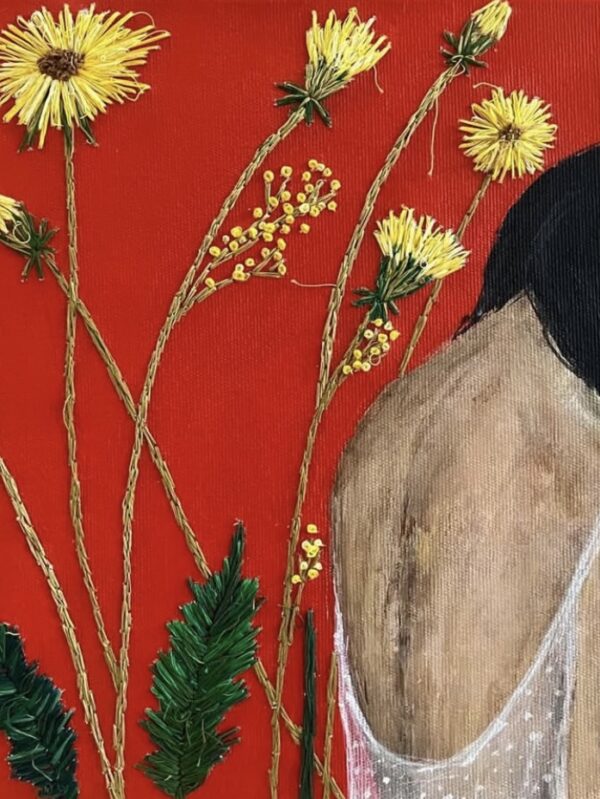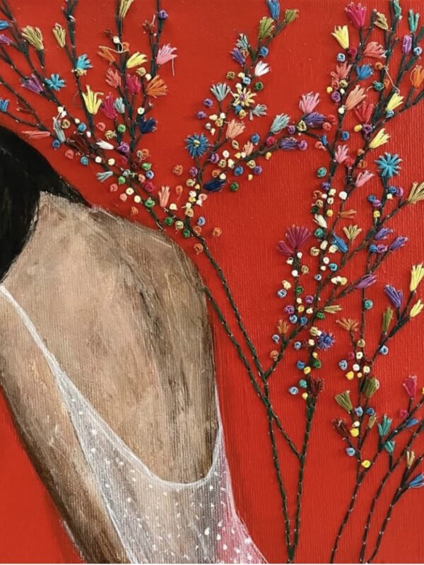 In her recent works, she incorporates traditional crochet techniques onto canvas, creating authentic and tactile pieces. By using a craft historically associated with women, she continues to question and reflect on themes of womanhood, identity, and societal roles through a contemporary lens.